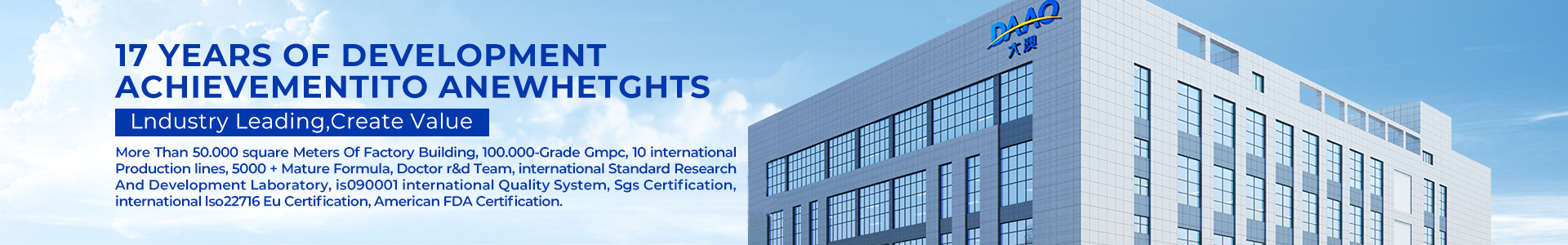 Guangdong Da'ao Biotechnology Co., Ltd. was established in 2008. It is a group company integrating R&D, manufacture of cosmetics products, sales, consulting and investment.DAAO Cosmetics manufacturing factory 30,000 square meters, 100,000- level GMPC, 10 international production lines, more than 5,000 mature formulas, a PhD research and development team, an international standard R&D laboratory, ISO9001 international quality management system, SGS certification, international 22716 EU certification, and U.S. FDA certification.Over the years, we have provided one-stop solutions such as brand planning, cosmetics customization, creative design, packaging support, R&D and production for domestic and foreign cosmetics brand customers, and provided multi-dimensional one-stop services for domestic and foreign beauty brand companies.