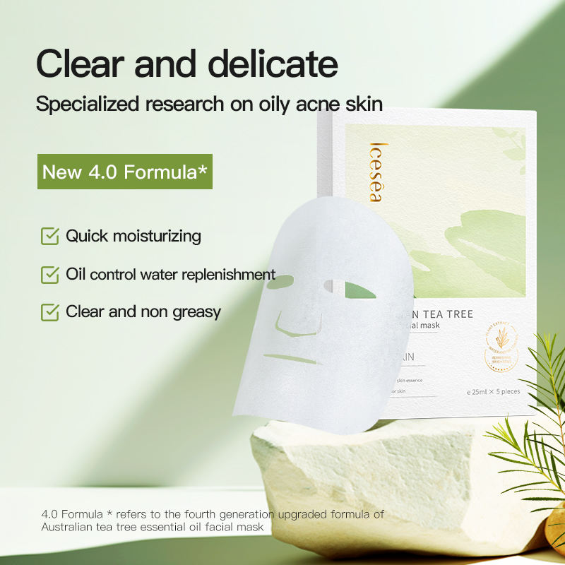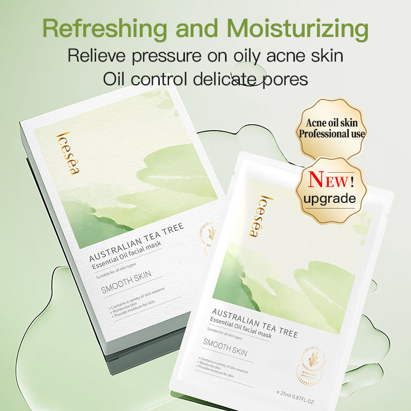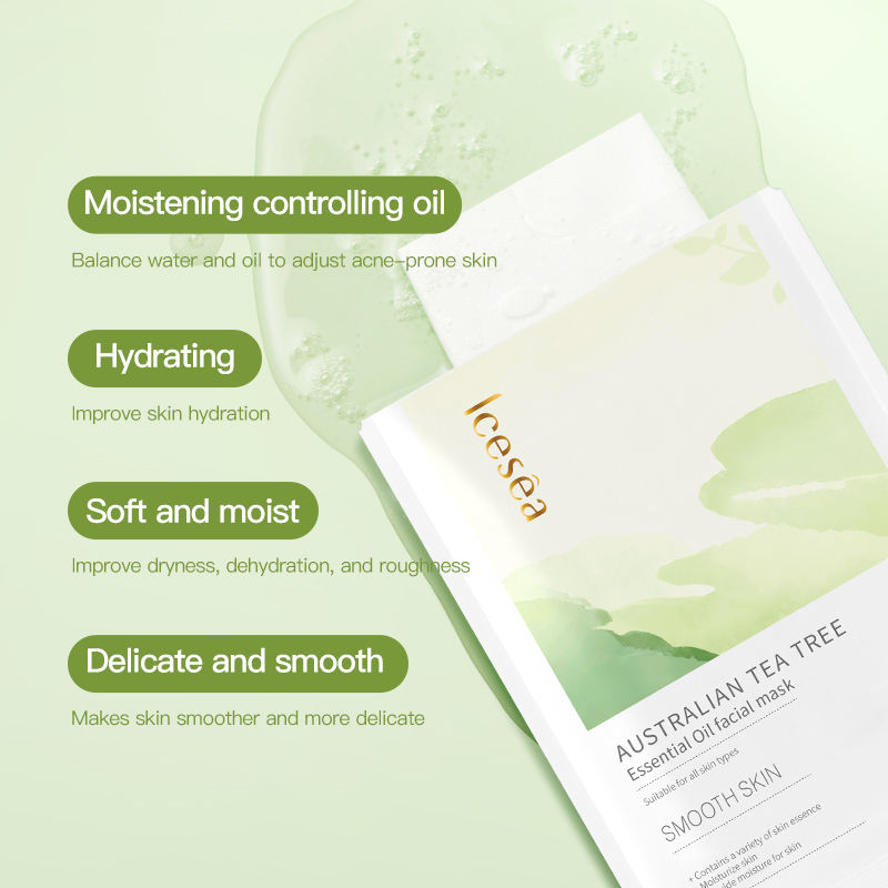 Products Description useFaceskin typeNormalTypefacemaskmask formSheetfeatureMoisturizermain ingredienttea treeingredientHerbalapplicationFor Home UseFragrancetea treegenderFemaleplace of originGuangdong, Chinabrand nameIceseaProduct NameFacial Sheet MaskBrandIceseaFunctionAcne TreatmentTypeFace Care ProductUsage15-20MinutesShelf Life3 YearsServiceOEM OBM ODMPackaging and deliverySelling UnitsSingle itemSingle package size19X14X2.5 cmSingle gross weight0.250 kg