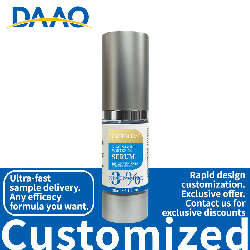 Products Description skin typeAll Skin Typestime usedDayFormSerummain ingredientNiacinamidefeatureWhitening, Skin Revitalizer, Anti-WrinklegenderFemaleingredientVegan, Cruelty-FreePackingBottleTypeOBM (Original Brand Manufacturing)applicationFor Home Useplace of originGuangdong, Chinabrand nameDaaocustomized logoGold StampingProduct nameNatural Face Whitening CreamFunctionMoisturizing Whitening Repairing SkinTypeSkin Care Beauty ProductUsageSkin Care TreatmentsLogoCustomized Logo AcceptablePackaging and deliverySelling UnitsSingle itemProduct NameWhitening Brightening SerumTypesink care productIngredientHerbalBusinessOEM/ODM Private your Brand/Wholesale Distributor.PaymentWestern Uion,All-payment,cash,T/TSamplesFree sample by R&D, only pay for transportation costs.CertificationWe Are Factory,ISO/GMPC/GMP/COA etc.ServiceProfessional team 24H sales service,Please free time to contact us.DeliveryEXW/FOB/DDP , by SEA/AIR/EXPRESS Shipping options
