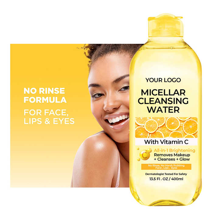 Products Description ingredientOtherFeatureDEEP CLEANSINGuseFaceSpecial IngredientsVitamin Cplace of originGuangdong, Chinabrand nameDAAOmodel numberOEMProduct nameMakeup Remover Cleansing WaterFunctionRemoves Makeup + Cleanses + GlowKeywordsOrganic Makeup RemoverVolume400ml, CustomMOQ1000 PcsSampleFreely Samples OfferedFeatureEasily CleaningEffectSkin CleanserServiceOEM ODM Private LabelPackaging and deliverySelling UnitsSingle itemSingle package size10X10X15 cmSingle gross weight0.600 KGProduct NameCustom logo Deep Cleansing Face washing Vitamin C Makeup Remover WaterFeatureDeep Cleaning, Makeup Remover, GlowApplicationFace wash, HydratingBusinessOEM/ODM Private your Brand/Wholesale Distributor.AdvantageHigh Quality and Fast Speed.SamplesSupport proofing sample by R&D,But the shipping is the charge.CertificationWe Are Factory,ISO/GMPC/GMP/COA etc.ServiceProfessional team 24H sales service,Please free time to contact us.DeliveryEXW/FOB/DDP , SEA/AIR/EXPRESS Shipping options