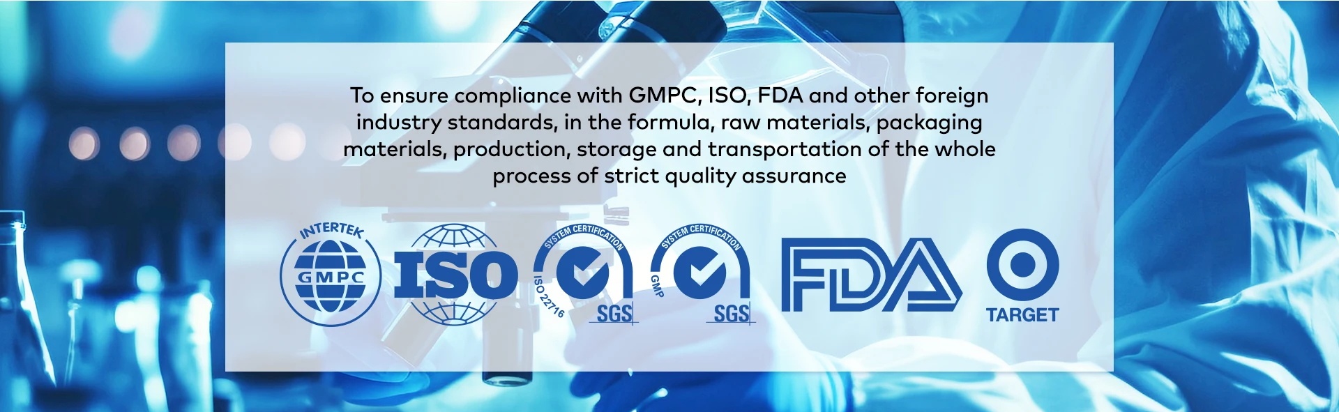 20,000 square meters of production workshops and international production equipment, and international GMPC dual certification production standards.