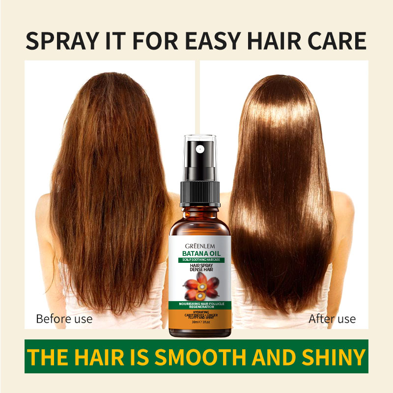Products Description typehair sprayingredientbatana oilfeatureSmoothing, Hair-Loss Prevention, Anti-Dandruff, Hair-Repairing, Moisturizingplace of originGuangdong, Chinamodel numberleave in conditioner sprayapplicationFor Home UseformulaConcentrationProduct nameHair Regrowth SerumFunctionNourishingAdvantageProfessional Hair Care ProductUsageHair TreatementEffectSmoothing Repairing StraighteningServiceOEM ODM Privare LabelPackaging and deliverySelling UnitsSingle itemSingle package size4X4X16 cmSingle gross weight0.350 kg