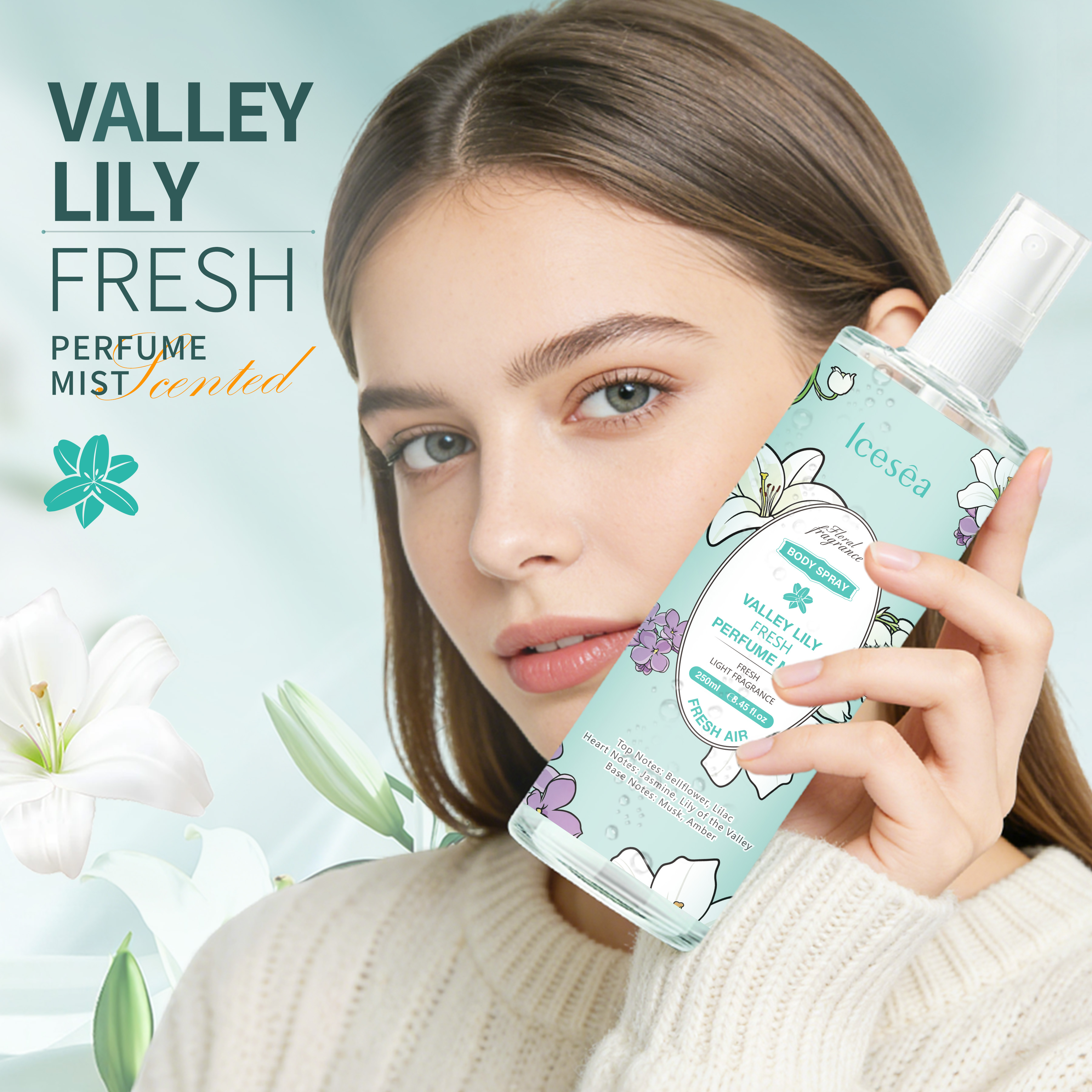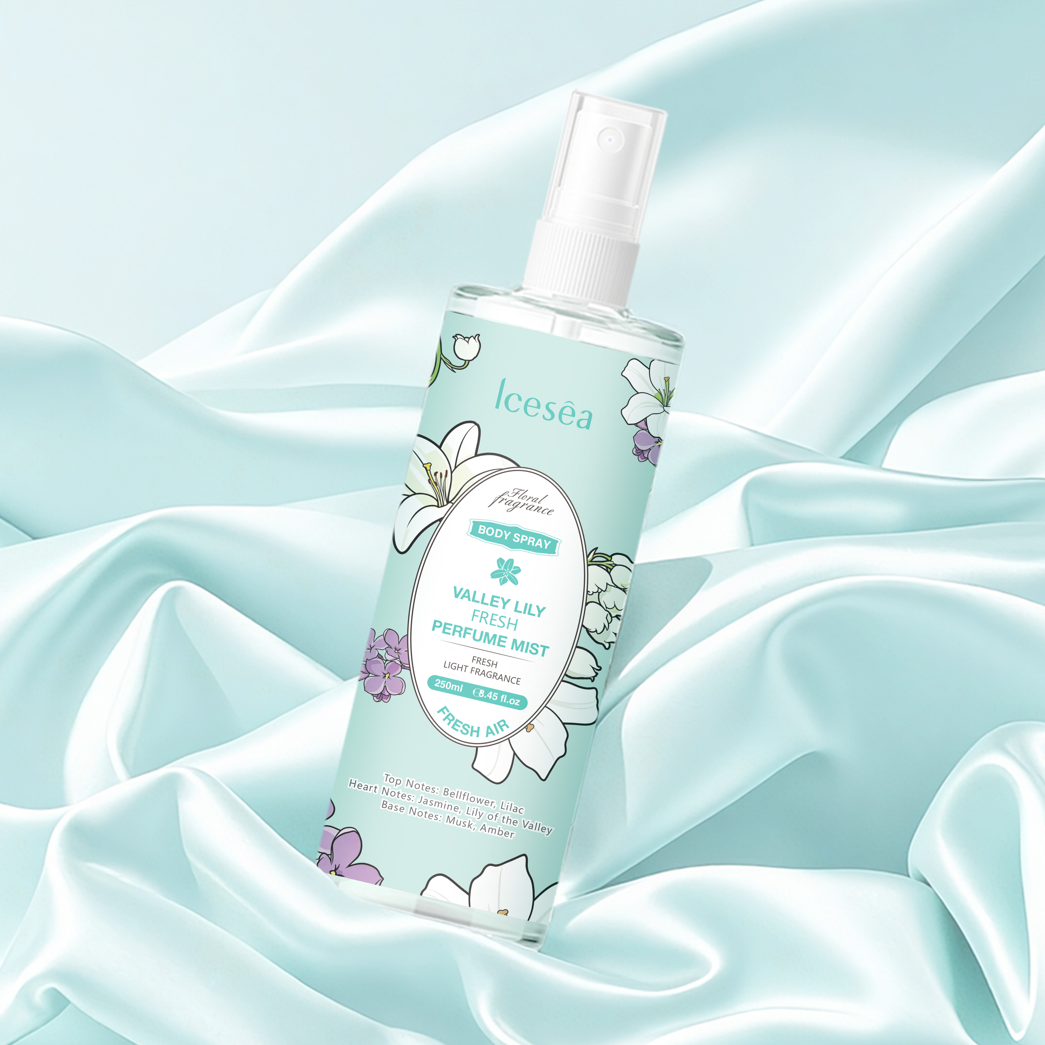 Products Description Key attributesformSpraySmellTop Notes: Bellflower, Lilac Heart Notes: JasminegenderFemaleage groupAdultsingredientBELLFLOWER JASMINE MUSK LILAC LILY OF THE VALLfeatureeliminate odor, long-lasting fragranceApplicationBodyBrandICESEAplace of originGuangdong, ChinaPackaging and deliverySelling UnitsSingle itemPackage size per batch5.5X5.5X16 cmGross weight per batch0.320 kg