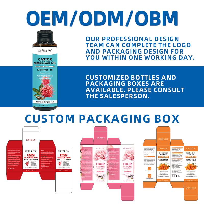 Products Description ingredientCastorfeatureOtherplace of originGuangdong, Chinaraw materialSeedstypePure Essential OilSkin TypeAll skin typesodorHerbalProduct nameCastor Massage OilFunctionSpa Massage Scraping BathUsageMessageProduct Type100 % Natural OrganicServiceOEM ODM Private LabelPackaging and deliverySelling UnitsSingle itemSingle package size5X5X14 cmSingle gross weight0.580 kg