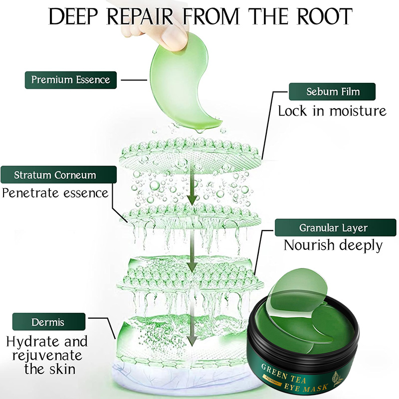 Private Label Refreshing Green Tea Collagen Hydrating Eye Patch to Remove dark Circles and Relieve fatigue(pic7)