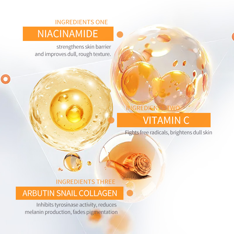 Products Description Key attributesfeatureLighteningmain ingredientGlycerin, Arbutin Snail CollagenapplicationFor Home Usetarget areaFaceingredientVitamin C, Hyaluronic Acid, 24k gold Retinol, NIACINAMIDE, ARBUTIN SNAIL COLLAGEN, Vitamin CgenderFemaleformLiquiduseFaceplace of originGuangdong, Chinabrand nameICESEAavailable quantity5000Packaging and deliverySelling UnitsSingle itemSingle package size4.5X4.5X10 cmSingle gross weight0.710 kg