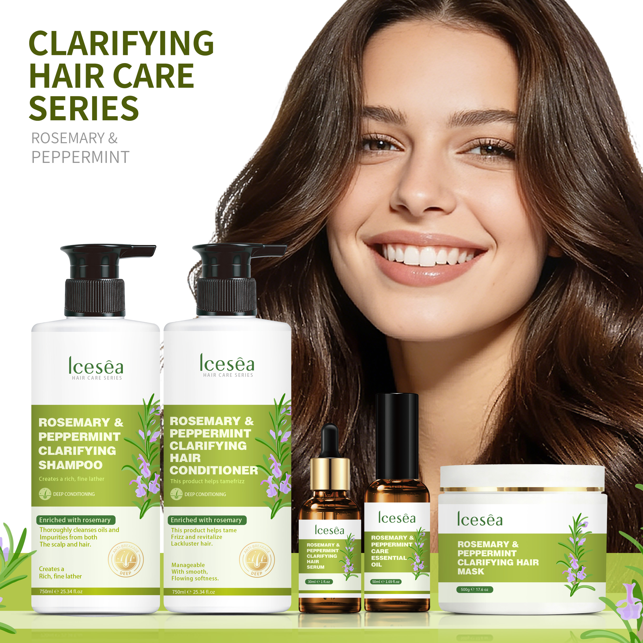 Icesea Rosemary Mint Hair Care Set Dandruff Removal, Oil Control, Damaged Hair Repair