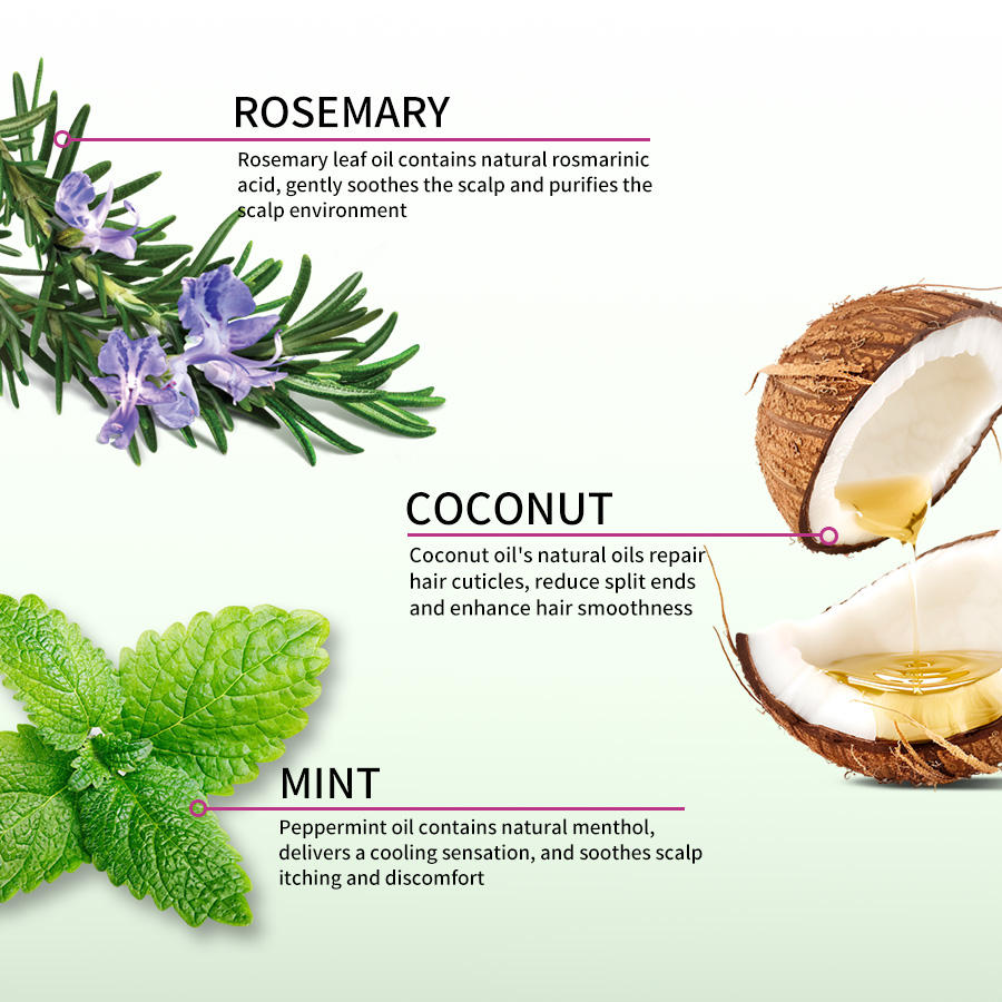 Products Description ingredientRosemary oil, Mint, Coconut OilfeatureHair Growth, Hair-Loss Preventionhair typeAllplace of originGuangdong, ChinaformLiquidgenderUnisexage groupAdultsformulaConcentrationapplicationFor Home UseProduct nameHair ShampooFunctionHair-Loss PreventionUsageHair Loss CareSuitable forHair ThinningServiceOEM ODM Privare LabelPackaging and deliverySelling UnitsSingle item