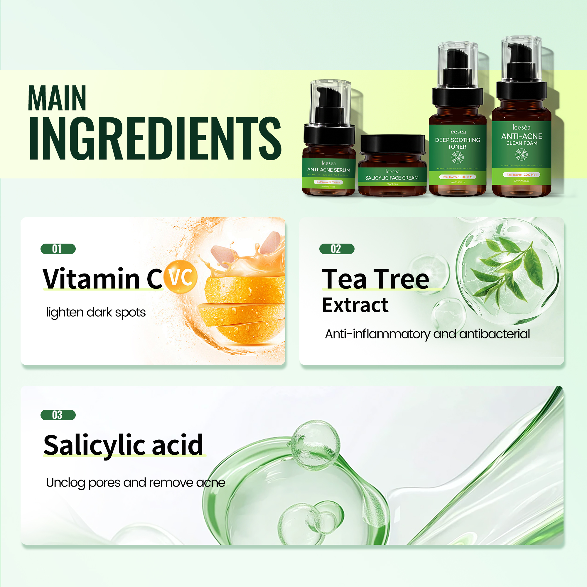 Products Description Key attributesSkin TypeNormal, Dry, Oily, All Skin Types, normal skinuseFacefeaturePore Cleaner, Exfoliator, Moisturizer, Acne Treatment, Nourishing, Black Head Remover, Anti-Allergy, Pore Shrinking, RejuvenatingFormSerum, Creammain ingredientVitamin C Tea Tree Extract Salicylic acidingredientVitamin C, Tea Tree Extract, Salicylic acidage groupTeenagersgenderUnisexShelf Life3YearsPacking TypeBottles, CartonsStyleLuxuriousbrand nameICESEAplace of originGuangdong, ChinaPackaging and deliverySelling UnitsSingle itemPackage size per batch20X20X18 cmGross weight per batch600.000 kg